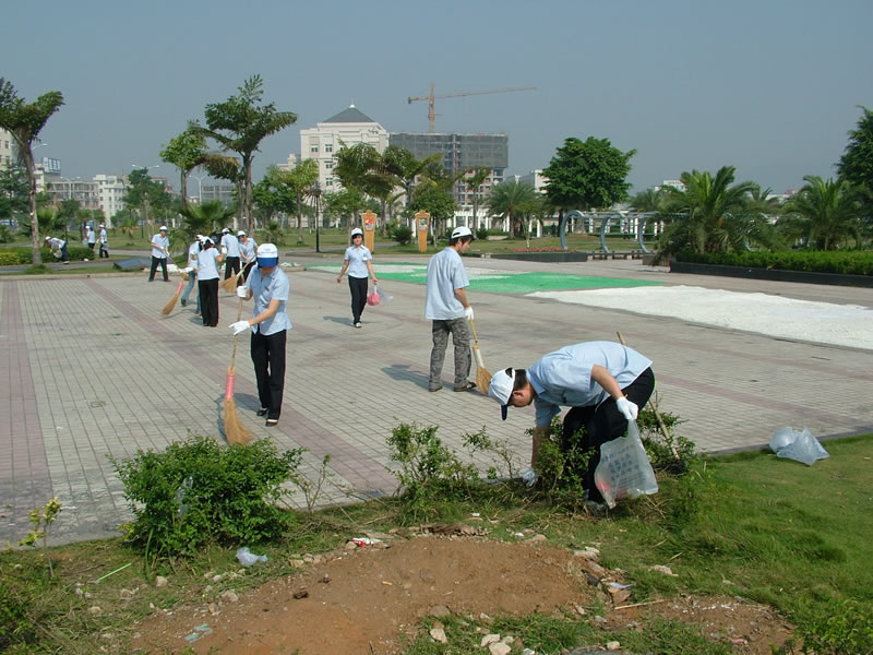 广场上绿荫如盖、绿草如茵,是居民们煅炼、休闲的好去处。但也正因为游人如织,草地上、灌木丛中,塑料袋、塑料杯、矿泉水瓶、西瓜皮、卫生纸等无处不在。leyu.乐鱼(集团)体育科技股份有限公司官网集团的青年志愿者们张挂好宣传条幅,顶着仲夏的烈日,汗流浃背地拾拣垃圾。尤其这些平时打扮得清清爽爽、喜爱干净的女孩们,此刻却连已经腐败的西瓜皮也敢于直面,毫不手软。