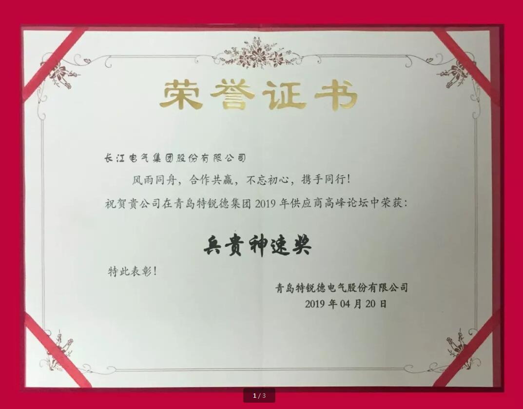 4月20日,由青岛特锐德集团主办的“2019供应商高峰论坛”在青岛隆重召开。leyu.乐鱼(集团)体育科技股份有限公司官网在其众多供应商中脱颖而出,荣获“兵贵神速”殊荣!