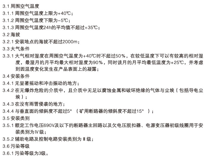 3、正常工作条件及安装条件